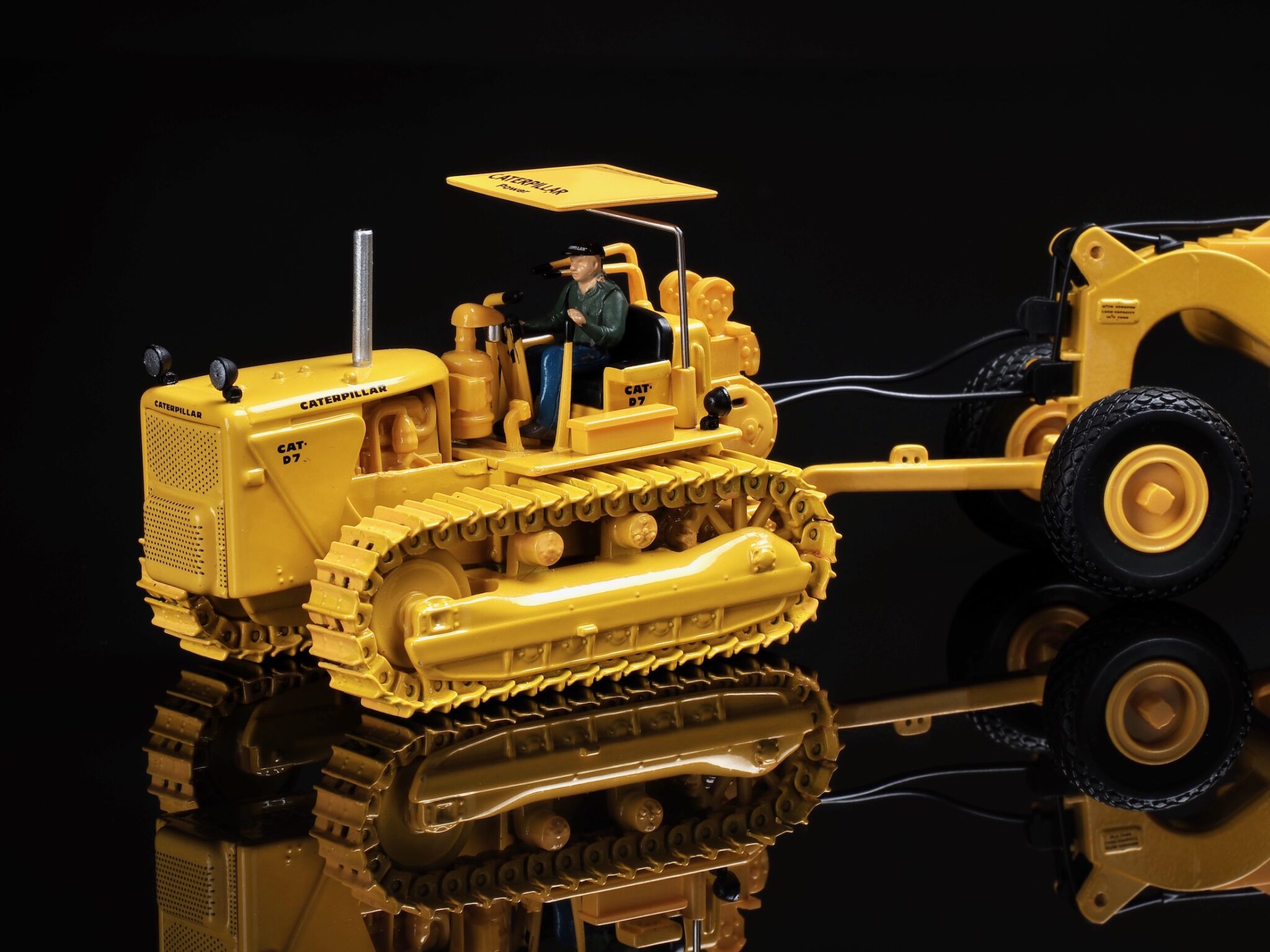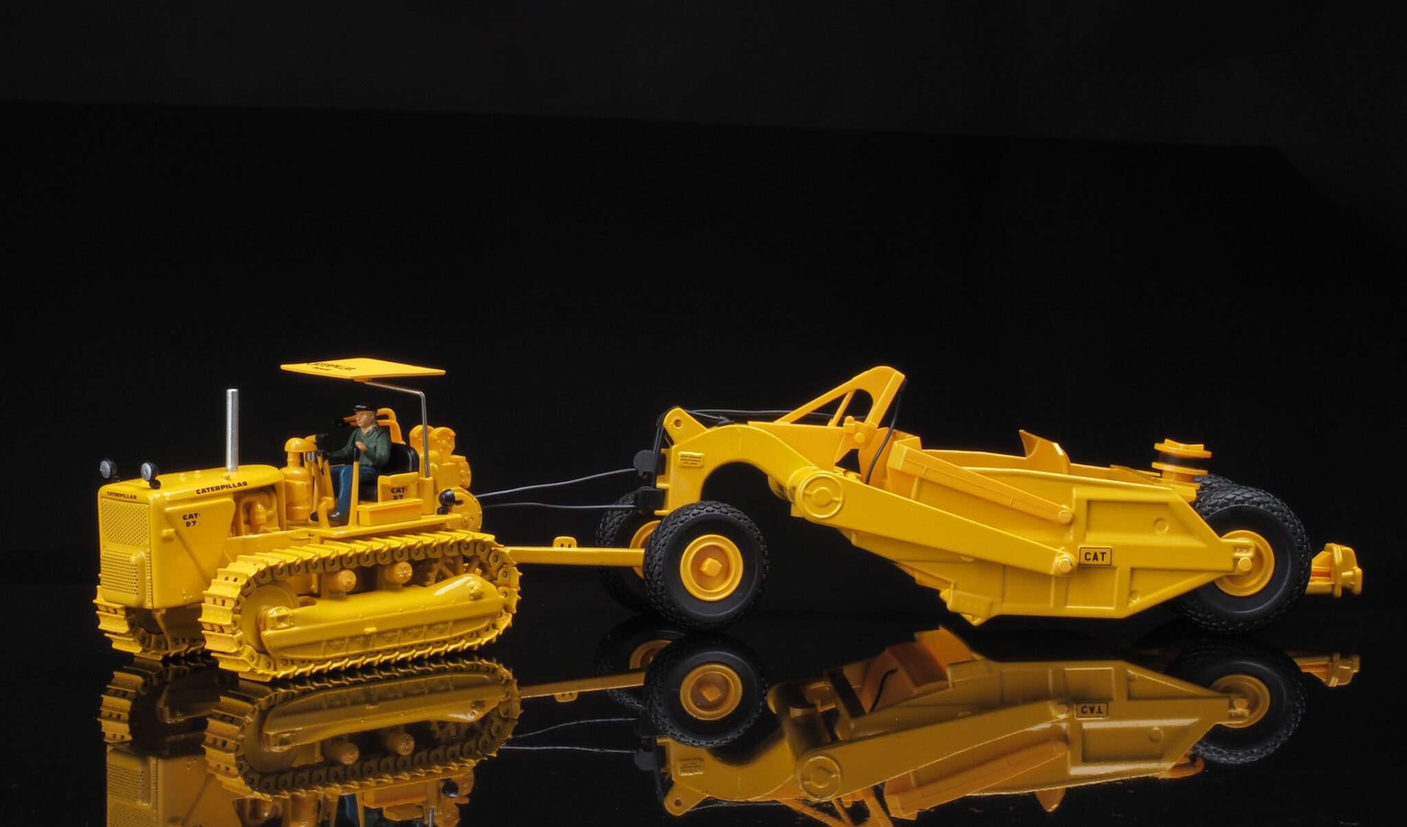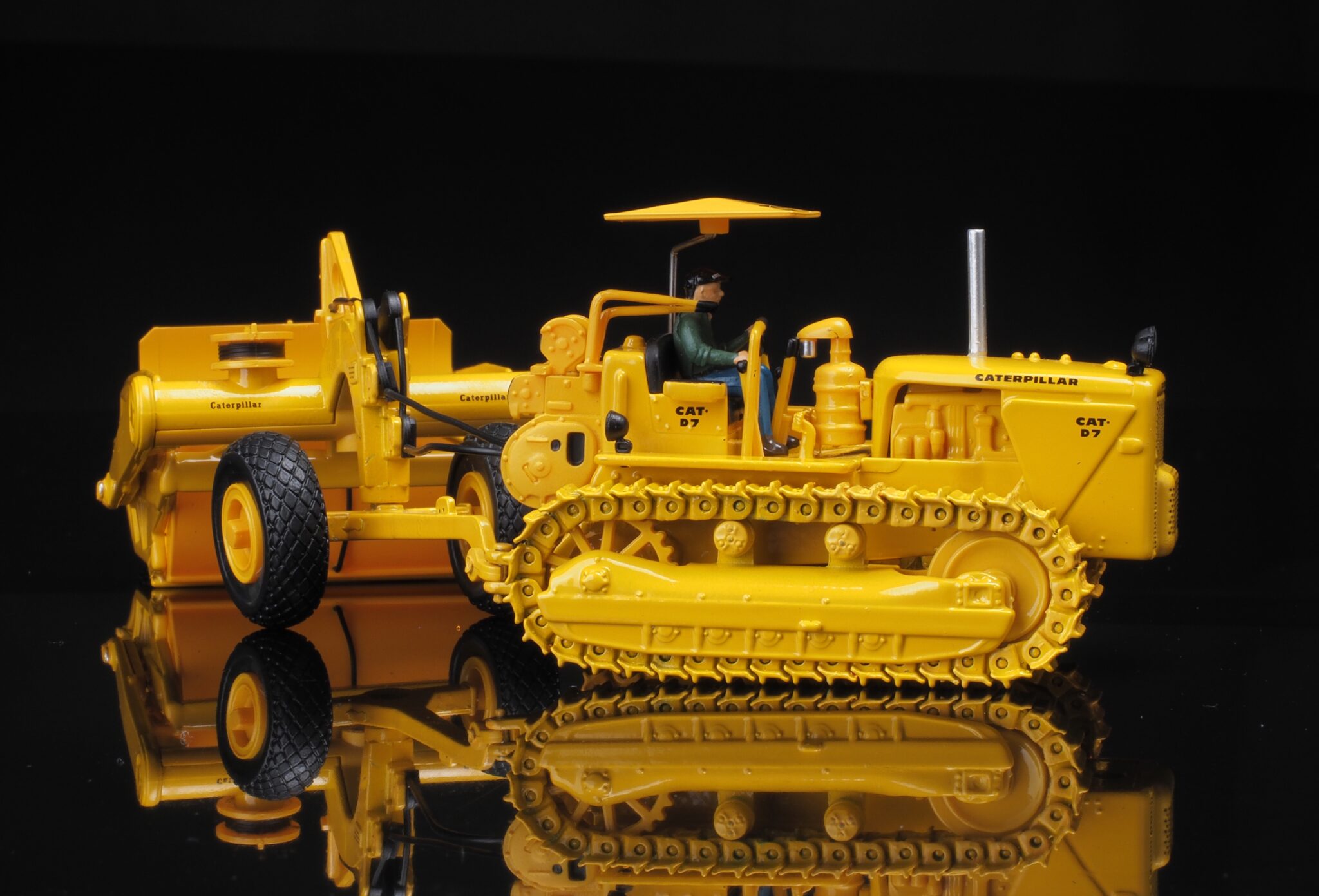 1:50 Scale Cat 621K Scraper & Cat No. 70 Scraper with D7 Track-Type Tractor