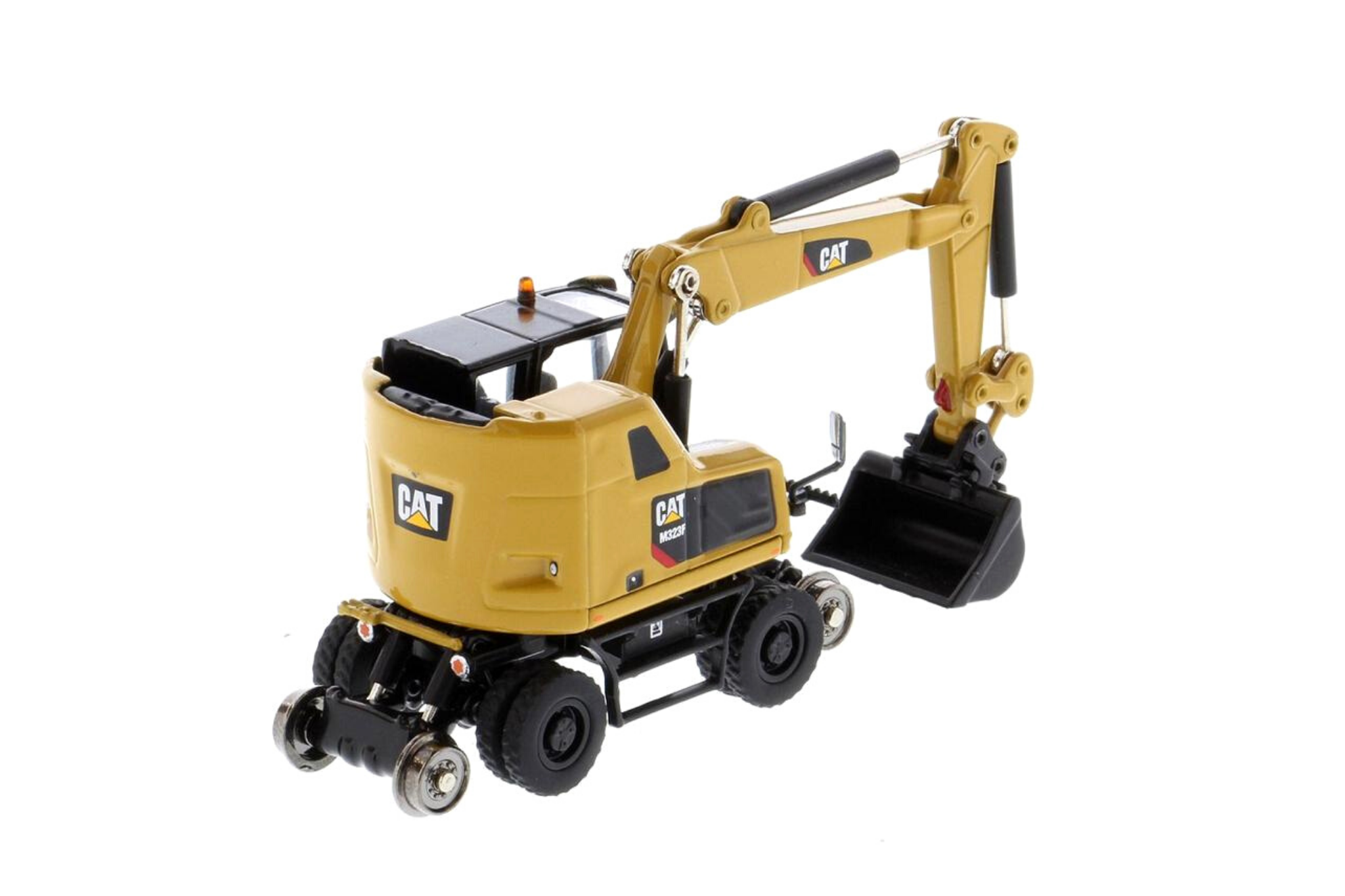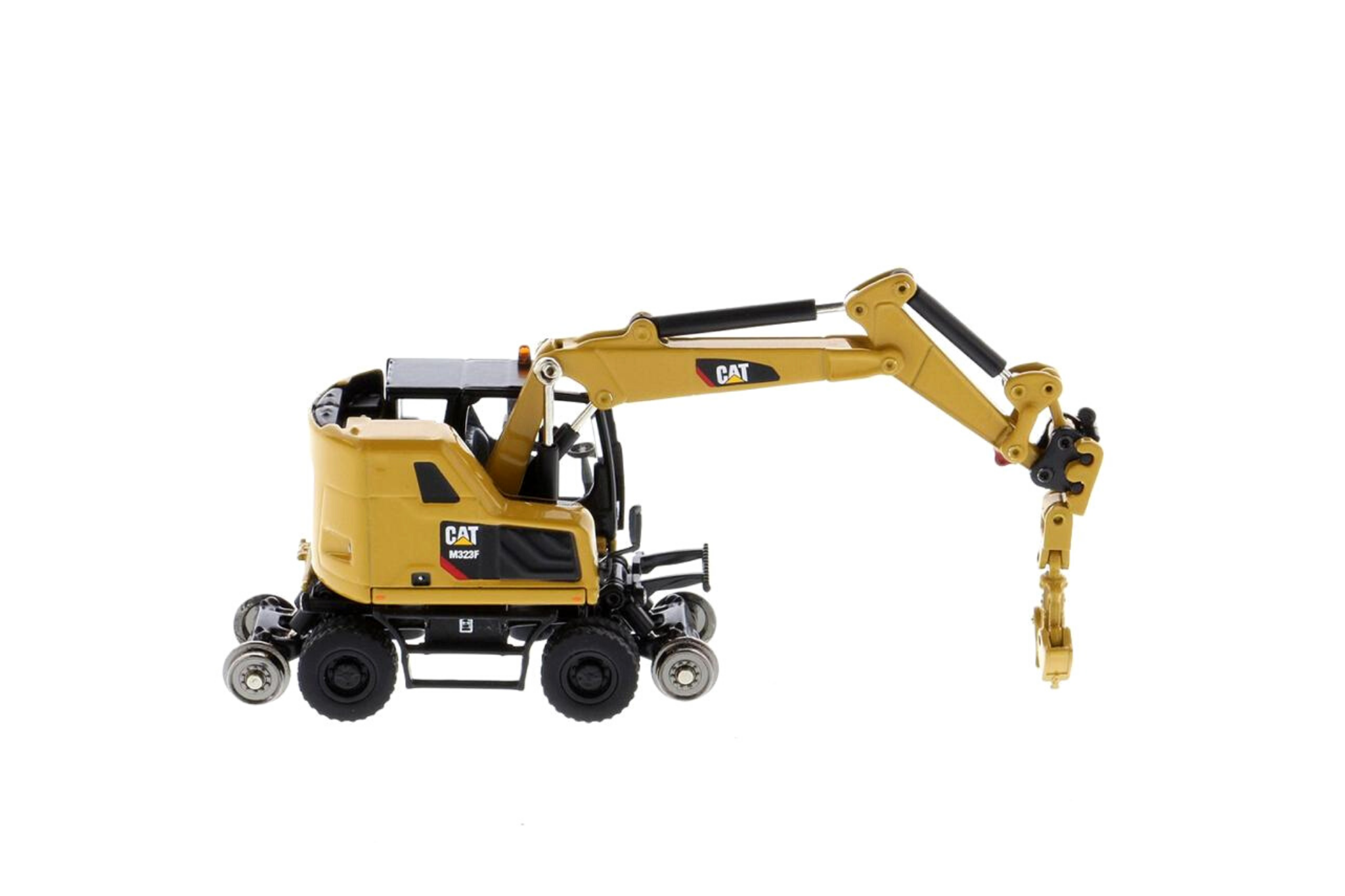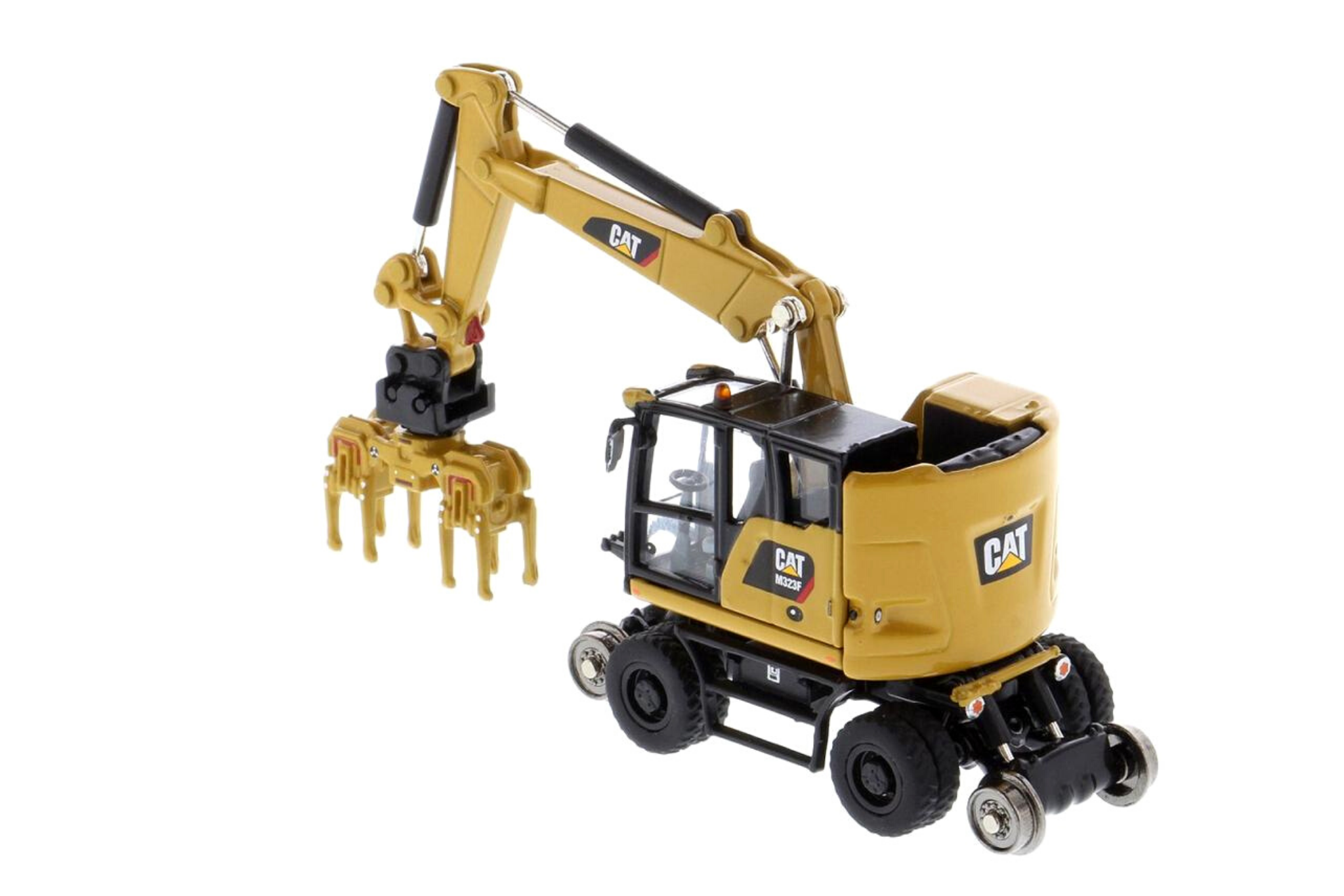 1:87 Cat® M323F Railroad Wheeled Excavator, Cat® Yellow with 3 work tools
